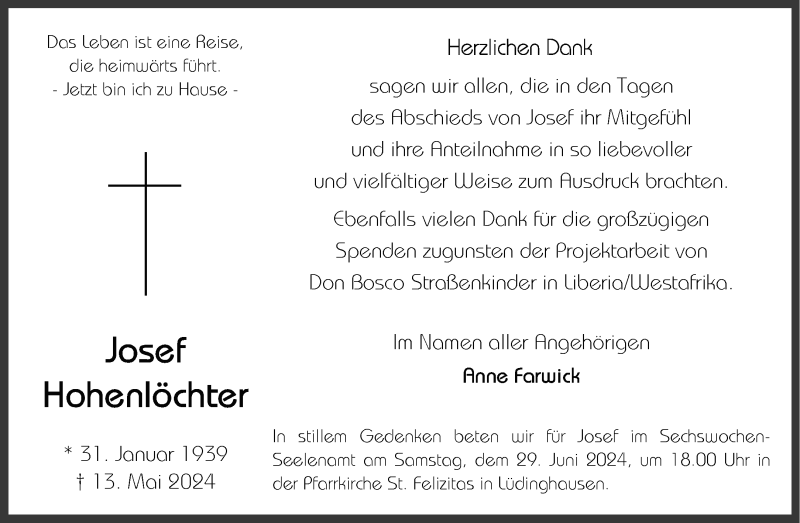 Hier finden Sie alle Traueranzeigen aus der Zeitung, die bisher für Josef Hohenlöchter erschienen sind. Weitere Traueranzeigen, die in der Zeitung erscheinen, werden hier ebenfalls aufgelistet