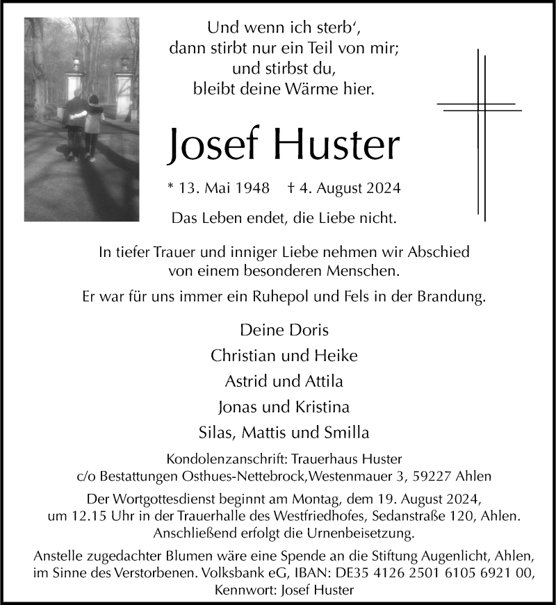 Hier finden Sie alle Traueranzeigen aus der Zeitung, die bisher für Josef Huster erschienen sind. Weitere Traueranzeigen, die in der Zeitung erscheinen, werden hier ebenfalls aufgelistet