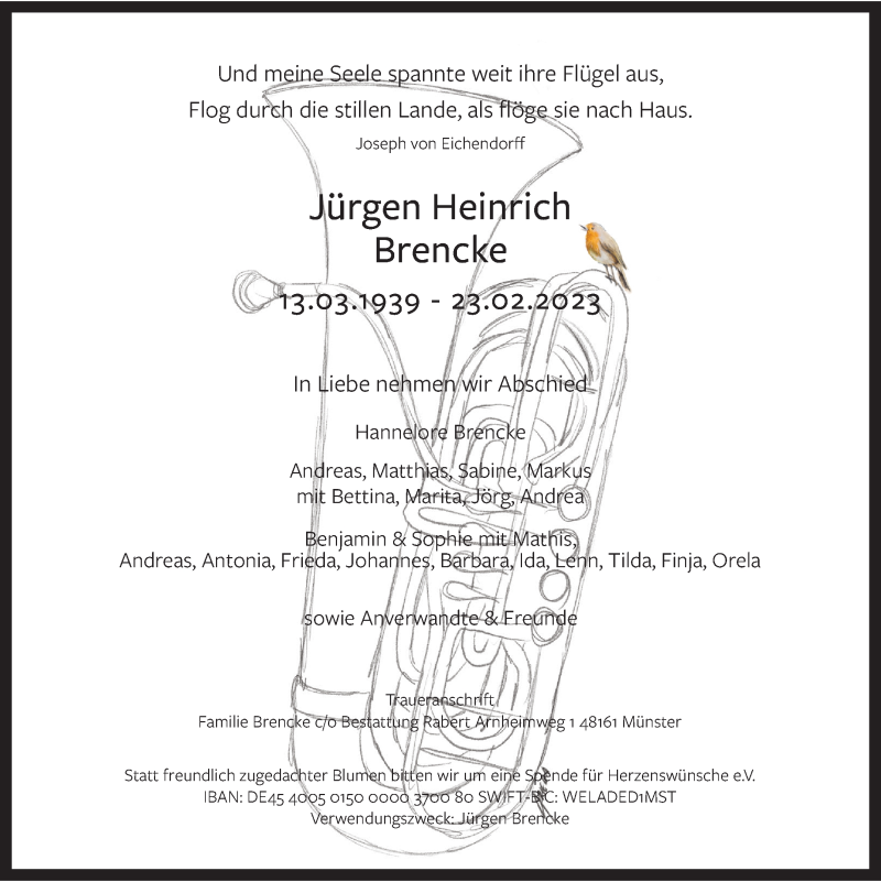 Hier finden Sie alle Traueranzeigen aus der Zeitung, die bisher für Jürgen Heinrich Brencke erschienen sind. Weitere Traueranzeigen, die in der Zeitung erscheinen, werden hier ebenfalls aufgelistet