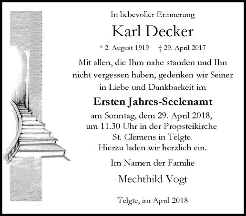 Hier finden Sie alle Traueranzeigen aus der Zeitung, die bisher für Karl Decker erschienen sind. Weitere Traueranzeigen, die in der Zeitung erscheinen, werden hier ebenfalls aufgelistet