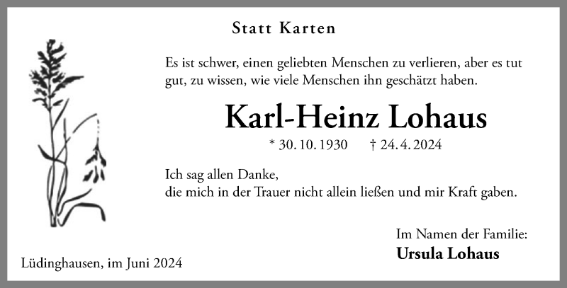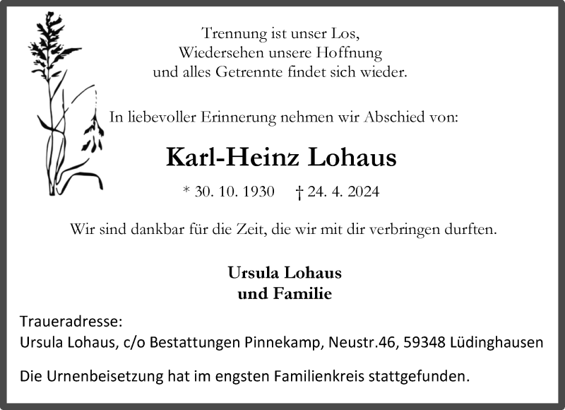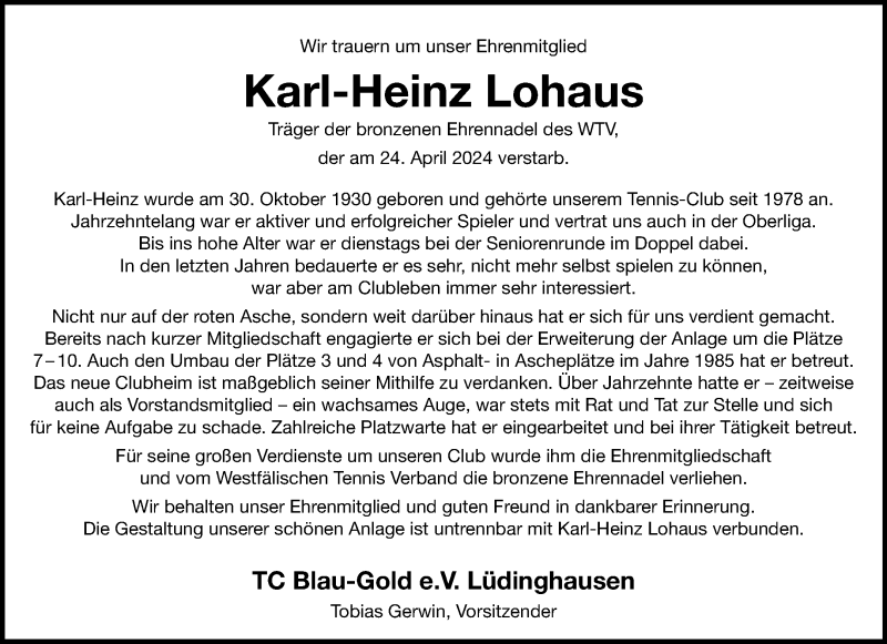 Hier finden Sie alle Traueranzeigen aus der Zeitung, die bisher für Karl-Heinz Lohaus erschienen sind. Weitere Traueranzeigen, die in der Zeitung erscheinen, werden hier ebenfalls aufgelistet