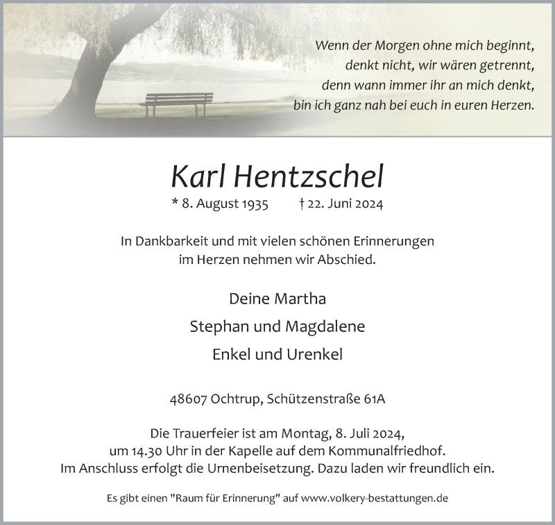 Hier finden Sie alle Traueranzeigen aus der Zeitung, die bisher für Karl Hentzschel erschienen sind. Weitere Traueranzeigen, die in der Zeitung erscheinen, werden hier ebenfalls aufgelistet