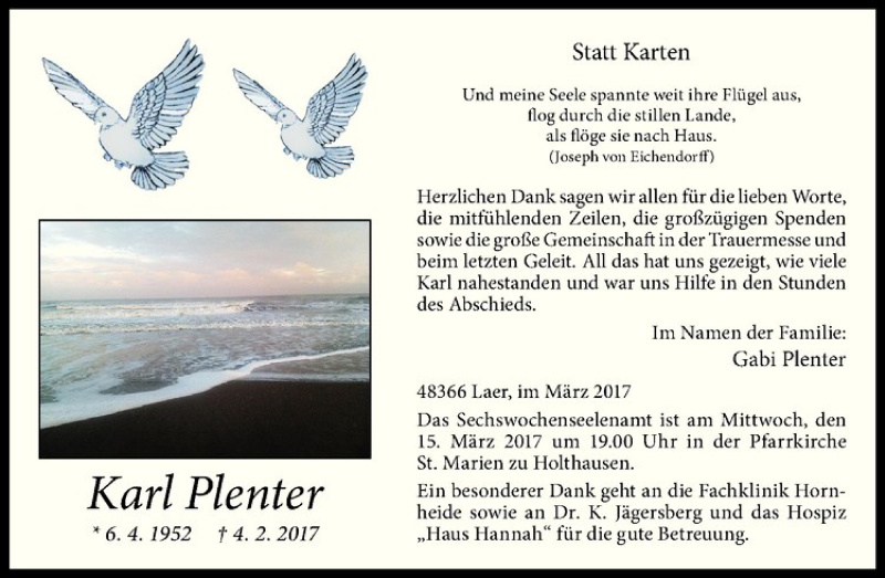 Hier finden Sie alle Traueranzeigen aus der Zeitung, die bisher für Karl Plenter erschienen sind. Weitere Traueranzeigen, die in der Zeitung erscheinen, werden hier ebenfalls aufgelistet
