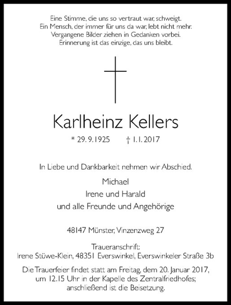 Hier finden Sie alle Traueranzeigen aus der Zeitung, die bisher für Karlheinz Kellers erschienen sind. Weitere Traueranzeigen, die in der Zeitung erscheinen, werden hier ebenfalls aufgelistet