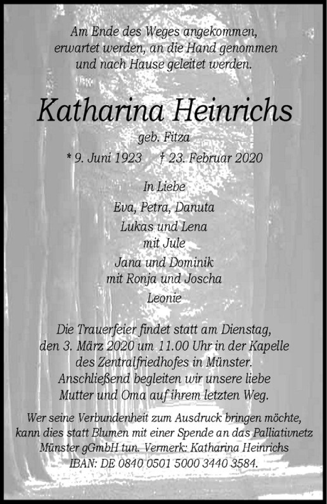 Hier finden Sie alle Traueranzeigen aus der Zeitung, die bisher für Katharina Heiinrichs erschienen sind. Weitere Traueranzeigen, die in der Zeitung erscheinen, werden hier ebenfalls aufgelistet