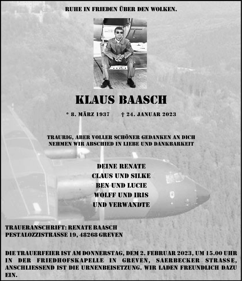 Hier finden Sie alle Traueranzeigen aus der Zeitung, die bisher für Klaus Baasch erschienen sind. Weitere Traueranzeigen, die in der Zeitung erscheinen, werden hier ebenfalls aufgelistet