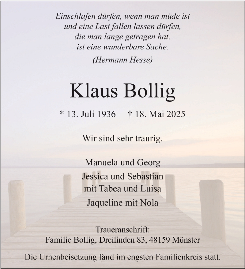 Hier finden Sie alle Traueranzeigen aus der Zeitung, die bisher für Klaus Bollig erschienen sind. Weitere Traueranzeigen, die in der Zeitung erscheinen, werden hier ebenfalls aufgelistet