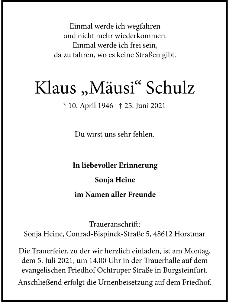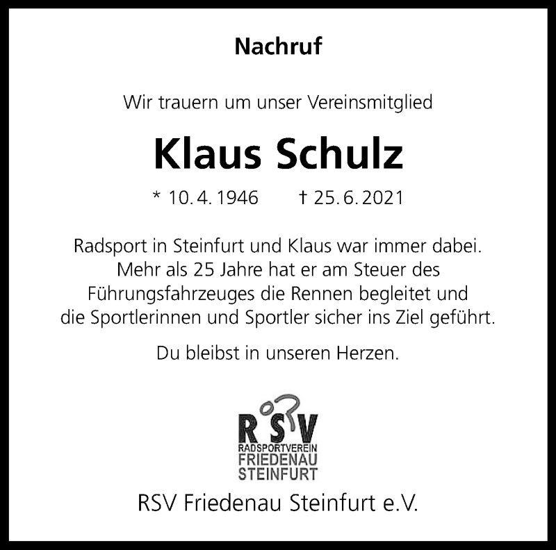 Hier finden Sie alle Traueranzeigen aus der Zeitung, die bisher für Klaus Schulz erschienen sind. Weitere Traueranzeigen, die in der Zeitung erscheinen, werden hier ebenfalls aufgelistet