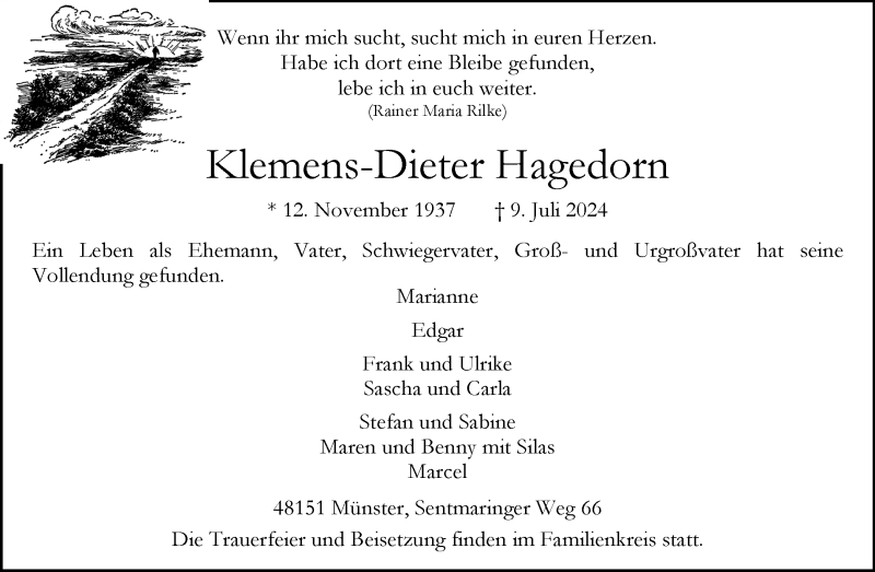 Hier finden Sie alle Traueranzeigen aus der Zeitung, die bisher für Klemens-Dieter Hagedorn erschienen sind. Weitere Traueranzeigen, die in der Zeitung erscheinen, werden hier ebenfalls aufgelistet