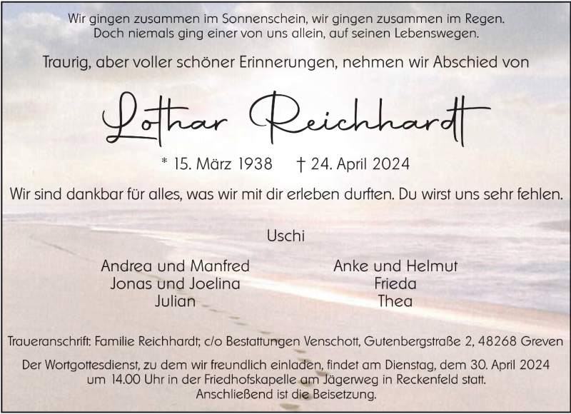 Hier finden Sie alle Traueranzeigen aus der Zeitung, die bisher für Lothar Reichhardt erschienen sind. Weitere Traueranzeigen, die in der Zeitung erscheinen, werden hier ebenfalls aufgelistet