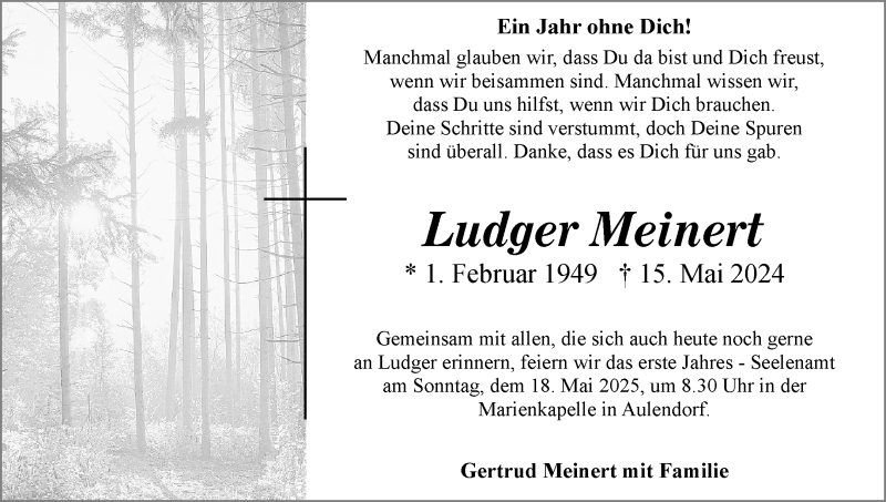 Hier finden Sie alle Traueranzeigen aus der Zeitung, die bisher für Ludger Meinert erschienen sind. Weitere Traueranzeigen, die in der Zeitung erscheinen, werden hier ebenfalls aufgelistet