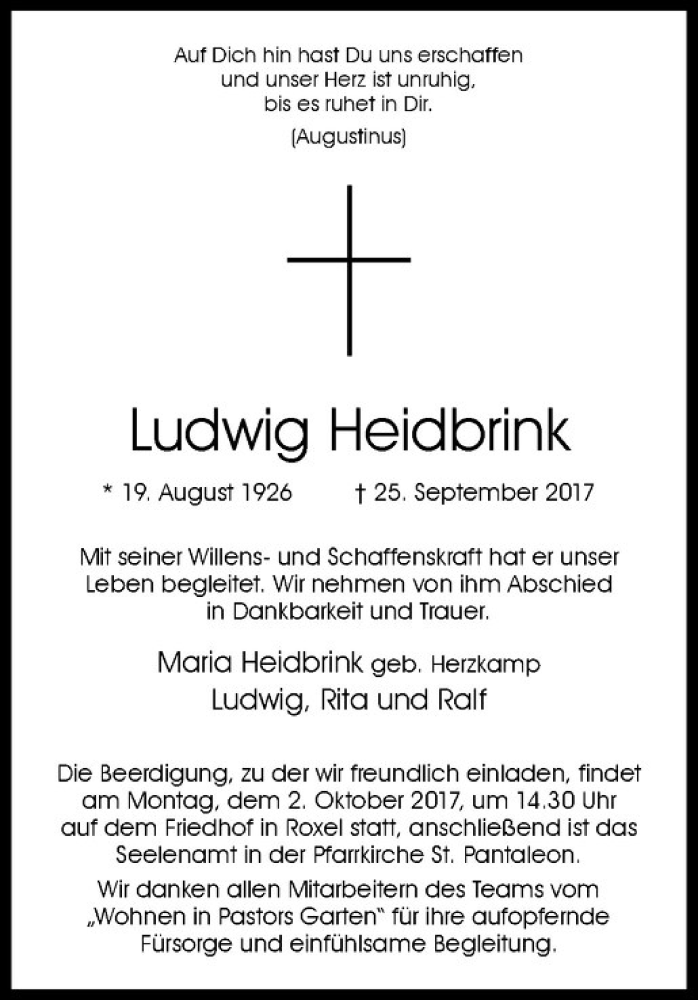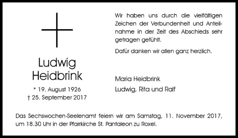 Hier finden Sie alle Traueranzeigen aus der Zeitung, die bisher für Ludwig Heidbrink erschienen sind. Weitere Traueranzeigen, die in der Zeitung erscheinen, werden hier ebenfalls aufgelistet