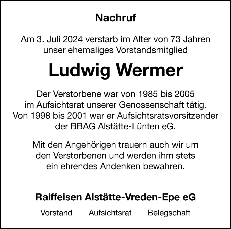 Hier finden Sie alle Traueranzeigen aus der Zeitung, die bisher für Ludwig Wermer erschienen sind. Weitere Traueranzeigen, die in der Zeitung erscheinen, werden hier ebenfalls aufgelistet