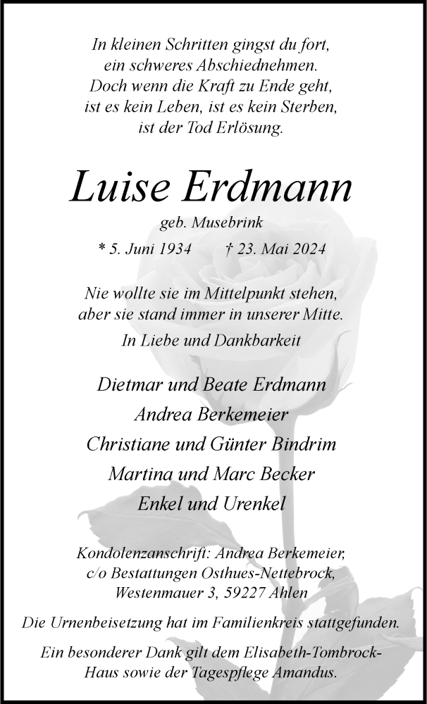 Hier finden Sie alle Traueranzeigen aus der Zeitung, die bisher für Luise Erdmann erschienen sind. Weitere Traueranzeigen, die in der Zeitung erscheinen, werden hier ebenfalls aufgelistet