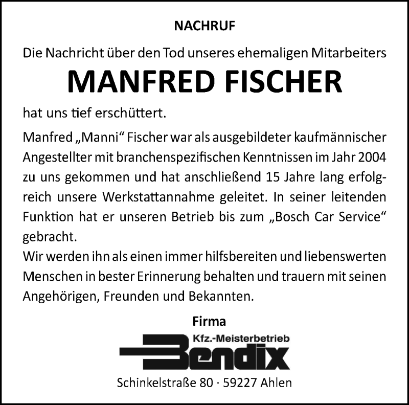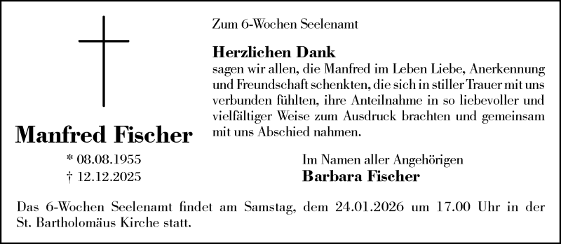Hier finden Sie alle Traueranzeigen aus der Zeitung, die bisher für Manfred Fischer erschienen sind. Weitere Traueranzeigen, die in der Zeitung erscheinen, werden hier ebenfalls aufgelistet
