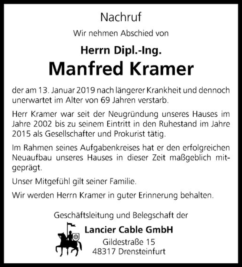 Hier finden Sie alle Traueranzeigen aus der Zeitung, die bisher für Manfred Kramer erschienen sind. Weitere Traueranzeigen, die in der Zeitung erscheinen, werden hier ebenfalls aufgelistet
