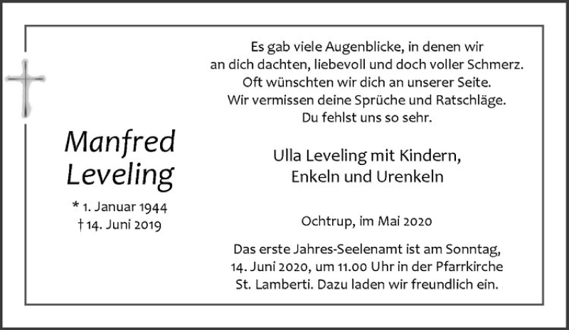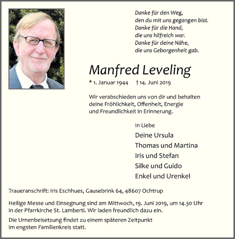 Hier finden Sie alle Traueranzeigen aus der Zeitung, die bisher für Manfred Leveling erschienen sind. Weitere Traueranzeigen, die in der Zeitung erscheinen, werden hier ebenfalls aufgelistet