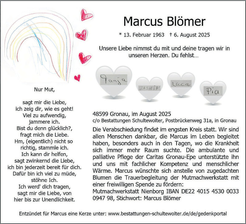 Hier finden Sie alle Traueranzeigen aus der Zeitung, die bisher für Marcus Blömer erschienen sind. Weitere Traueranzeigen, die in der Zeitung erscheinen, werden hier ebenfalls aufgelistet