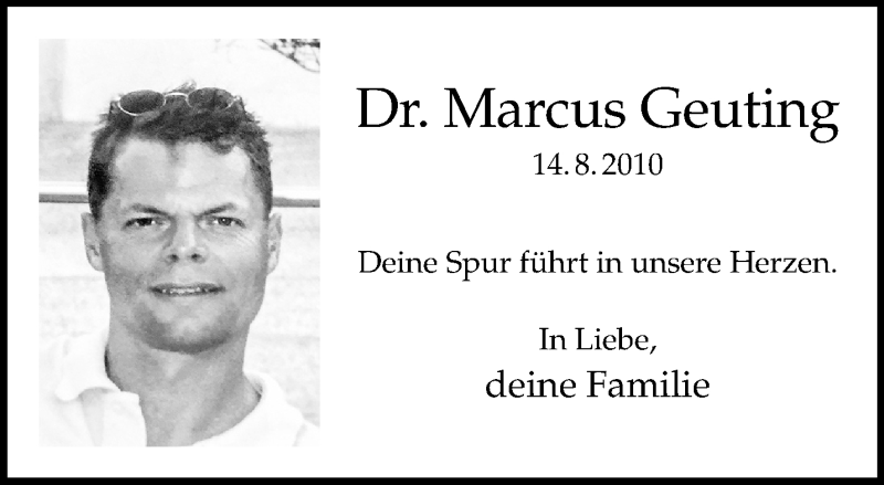 Hier finden Sie alle Traueranzeigen aus der Zeitung, die bisher für Marcus Geuting erschienen sind. Weitere Traueranzeigen, die in der Zeitung erscheinen, werden hier ebenfalls aufgelistet
