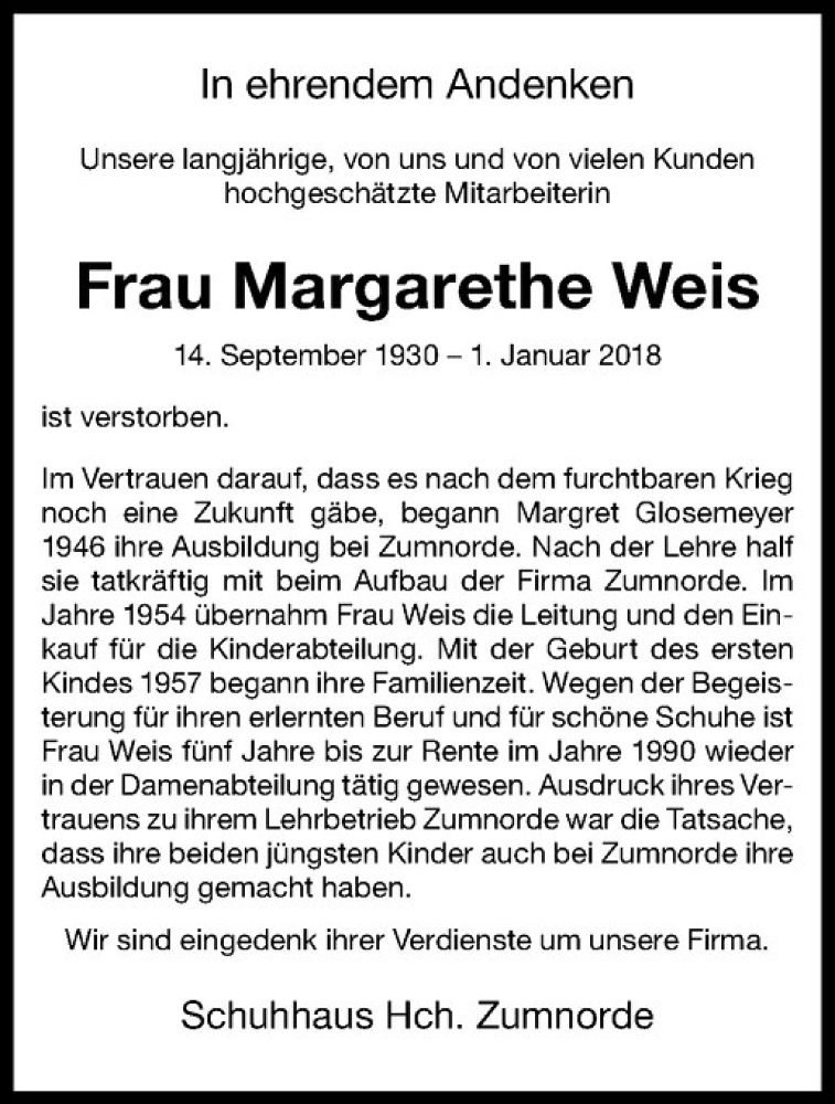 Hier finden Sie alle Traueranzeigen aus der Zeitung, die bisher für Margarethe Weis erschienen sind. Weitere Traueranzeigen, die in der Zeitung erscheinen, werden hier ebenfalls aufgelistet