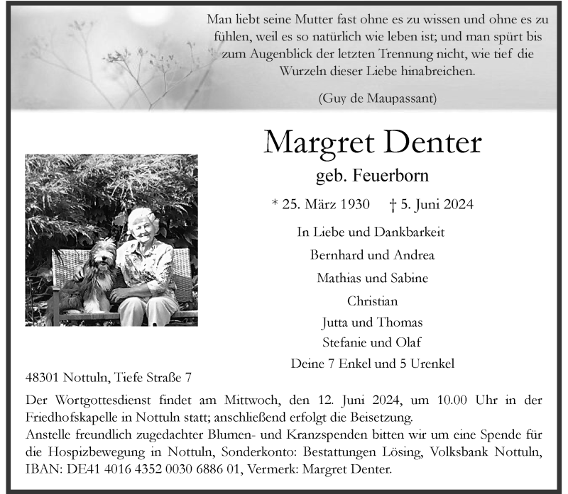 Hier finden Sie alle Traueranzeigen aus der Zeitung, die bisher für Margret Denter erschienen sind. Weitere Traueranzeigen, die in der Zeitung erscheinen, werden hier ebenfalls aufgelistet
