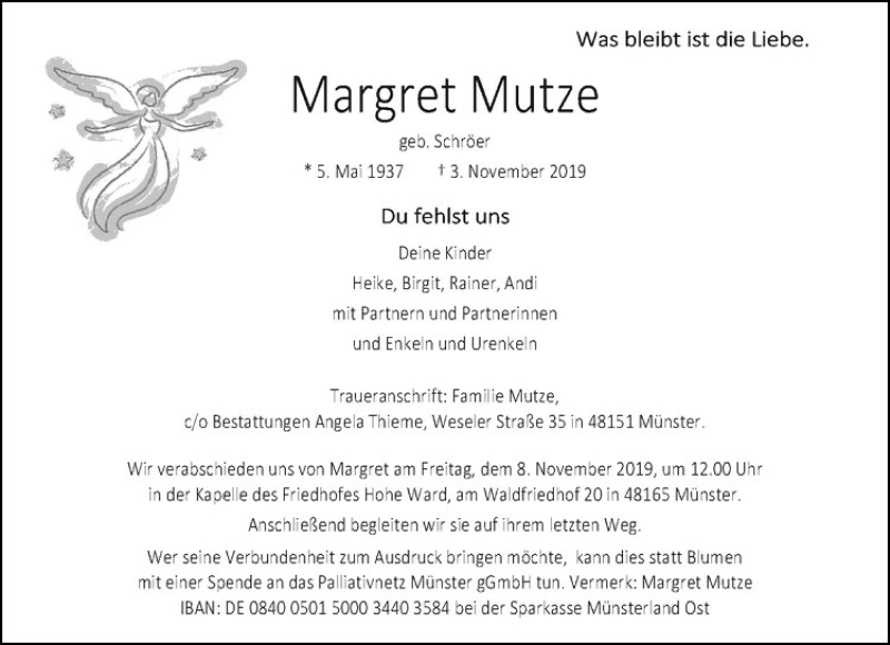 Hier finden Sie alle Traueranzeigen aus der Zeitung, die bisher für Margret Mutze erschienen sind. Weitere Traueranzeigen, die in der Zeitung erscheinen, werden hier ebenfalls aufgelistet