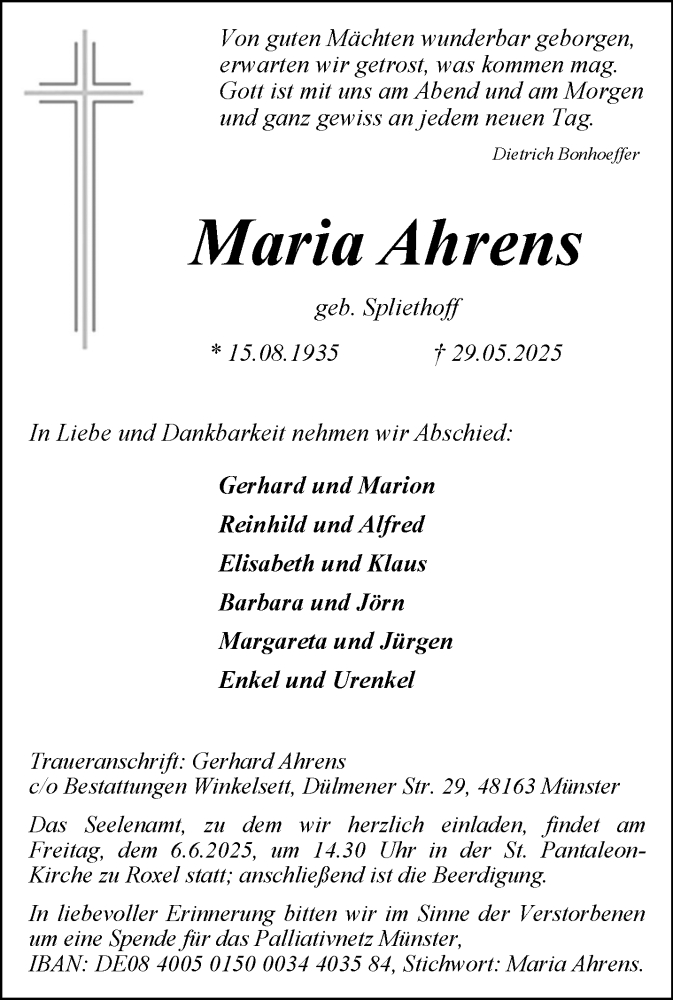 Hier finden Sie alle Traueranzeigen aus der Zeitung, die bisher für Maria Ahrens erschienen sind. Weitere Traueranzeigen, die in der Zeitung erscheinen, werden hier ebenfalls aufgelistet