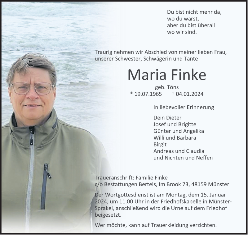Hier finden Sie alle Traueranzeigen aus der Zeitung, die bisher für Maria Finke erschienen sind. Weitere Traueranzeigen, die in der Zeitung erscheinen, werden hier ebenfalls aufgelistet