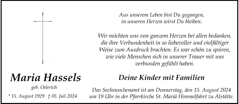 Hier finden Sie alle Traueranzeigen aus der Zeitung, die bisher für Maria Hassels erschienen sind. Weitere Traueranzeigen, die in der Zeitung erscheinen, werden hier ebenfalls aufgelistet
