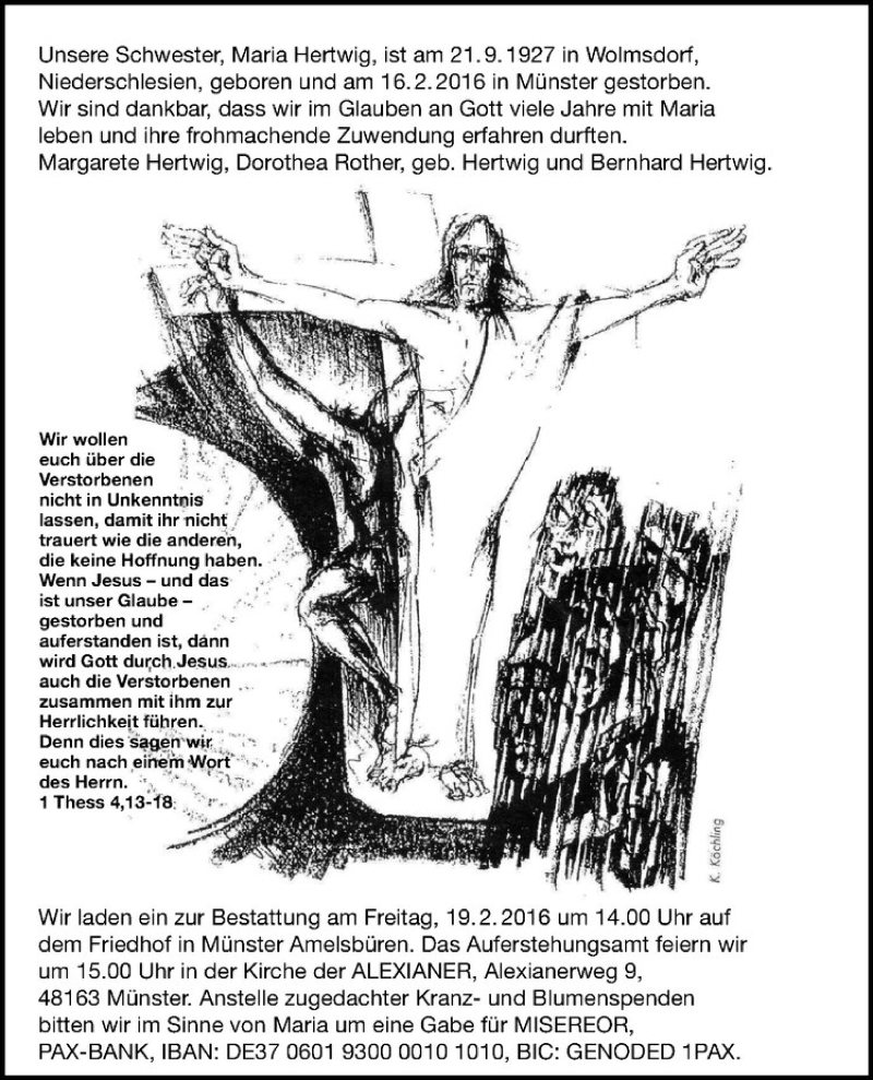 Hier finden Sie alle Traueranzeigen aus der Zeitung, die bisher für Maria Hertwig erschienen sind. Weitere Traueranzeigen, die in der Zeitung erscheinen, werden hier ebenfalls aufgelistet