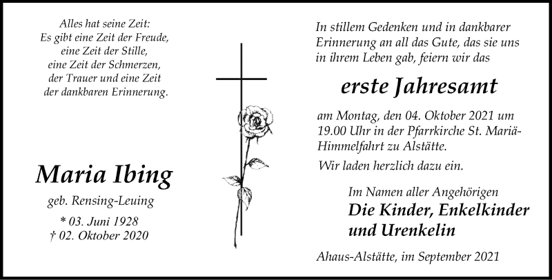 Hier finden Sie alle Traueranzeigen aus der Zeitung, die bisher für Maria Ibing erschienen sind. Weitere Traueranzeigen, die in der Zeitung erscheinen, werden hier ebenfalls aufgelistet