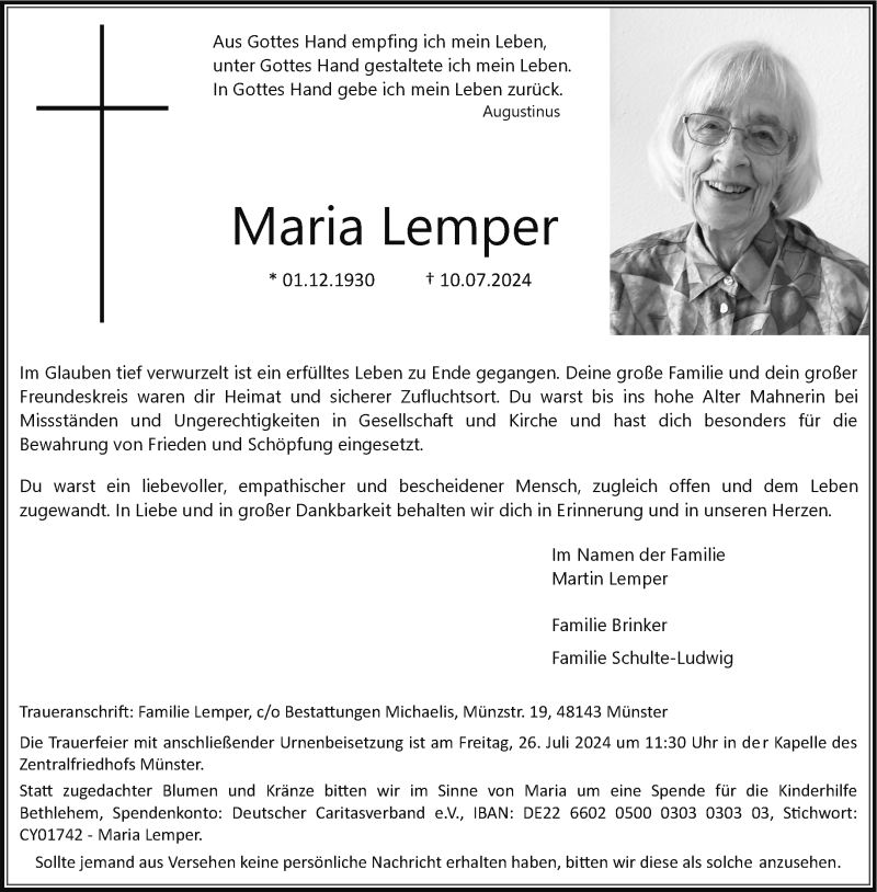Hier finden Sie alle Traueranzeigen aus der Zeitung, die bisher für Maria Lemper erschienen sind. Weitere Traueranzeigen, die in der Zeitung erscheinen, werden hier ebenfalls aufgelistet