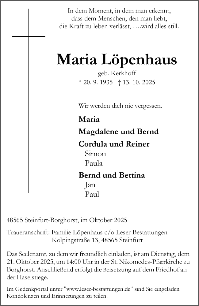 Hier finden Sie alle Traueranzeigen aus der Zeitung, die bisher für Maria Löpenhaus erschienen sind. Weitere Traueranzeigen, die in der Zeitung erscheinen, werden hier ebenfalls aufgelistet