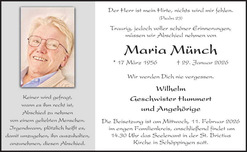 Hier finden Sie alle Traueranzeigen aus der Zeitung, die bisher für Maria Münch erschienen sind. Weitere Traueranzeigen, die in der Zeitung erscheinen, werden hier ebenfalls aufgelistet
