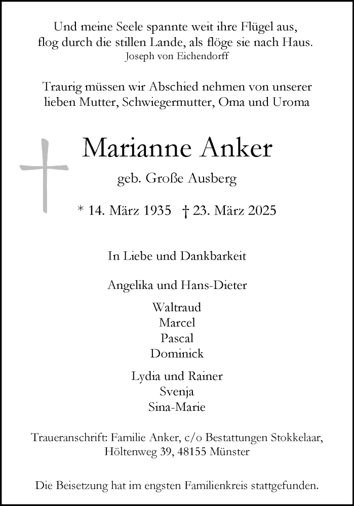 Hier finden Sie alle Traueranzeigen aus der Zeitung, die bisher für Marianne Anker erschienen sind. Weitere Traueranzeigen, die in der Zeitung erscheinen, werden hier ebenfalls aufgelistet
