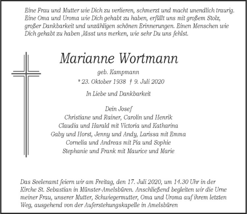 Hier finden Sie alle Traueranzeigen aus der Zeitung, die bisher für Marianne Wortmann erschienen sind. Weitere Traueranzeigen, die in der Zeitung erscheinen, werden hier ebenfalls aufgelistet