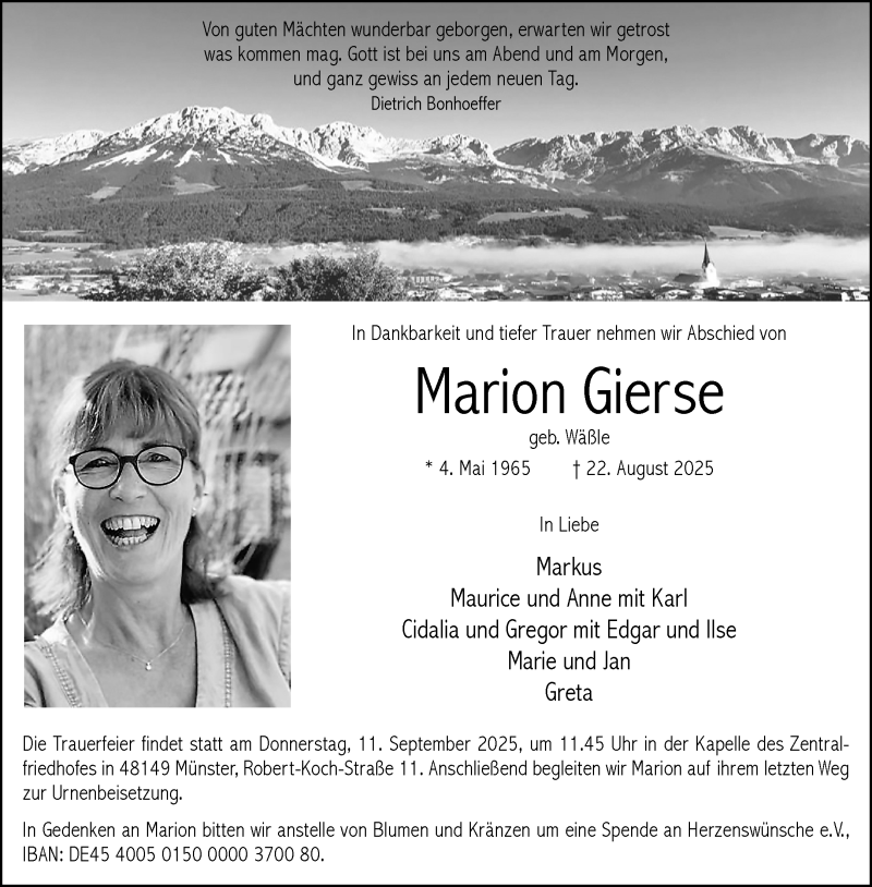 Hier finden Sie alle Traueranzeigen aus der Zeitung, die bisher für Marion Gierse erschienen sind. Weitere Traueranzeigen, die in der Zeitung erscheinen, werden hier ebenfalls aufgelistet
