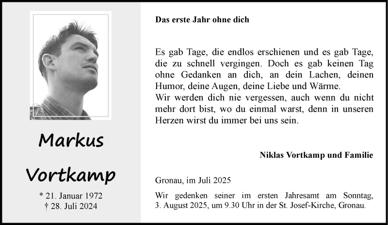 Hier finden Sie alle Traueranzeigen aus der Zeitung, die bisher für Markus Vortkamp erschienen sind. Weitere Traueranzeigen, die in der Zeitung erscheinen, werden hier ebenfalls aufgelistet