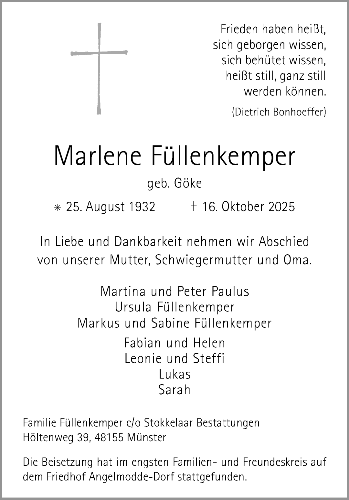Hier finden Sie alle Traueranzeigen aus der Zeitung, die bisher für Marlene Füllenkemper erschienen sind. Weitere Traueranzeigen, die in der Zeitung erscheinen, werden hier ebenfalls aufgelistet