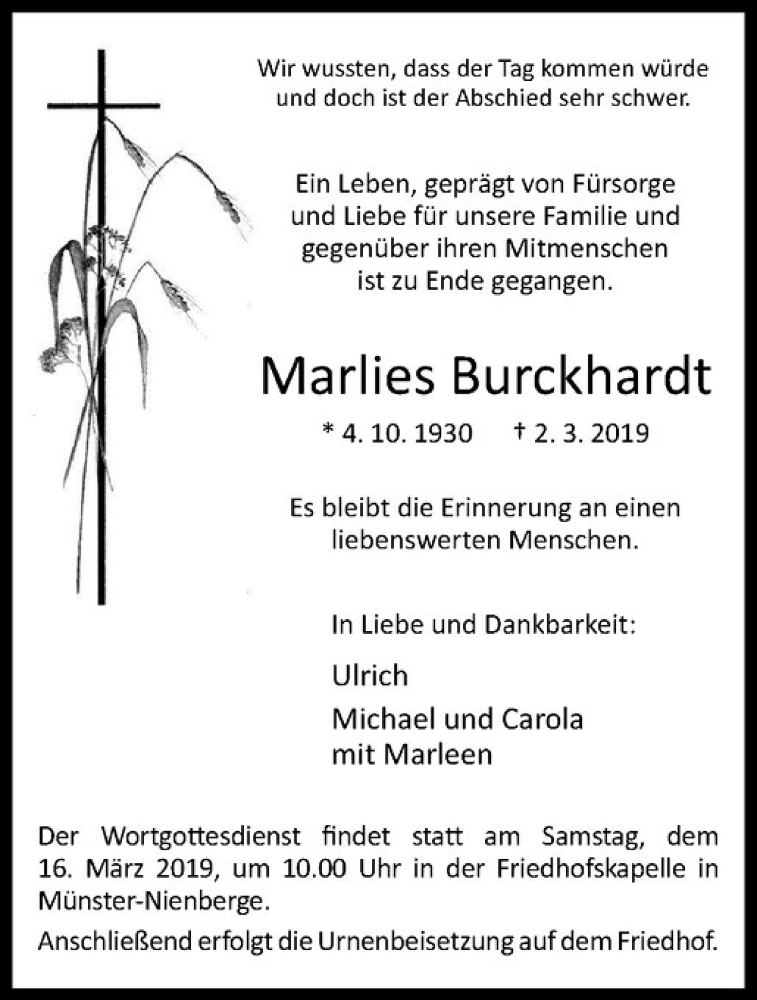Hier finden Sie alle Traueranzeigen aus der Zeitung, die bisher für Marlies Burckhardt erschienen sind. Weitere Traueranzeigen, die in der Zeitung erscheinen, werden hier ebenfalls aufgelistet