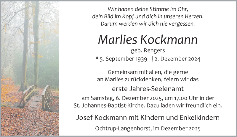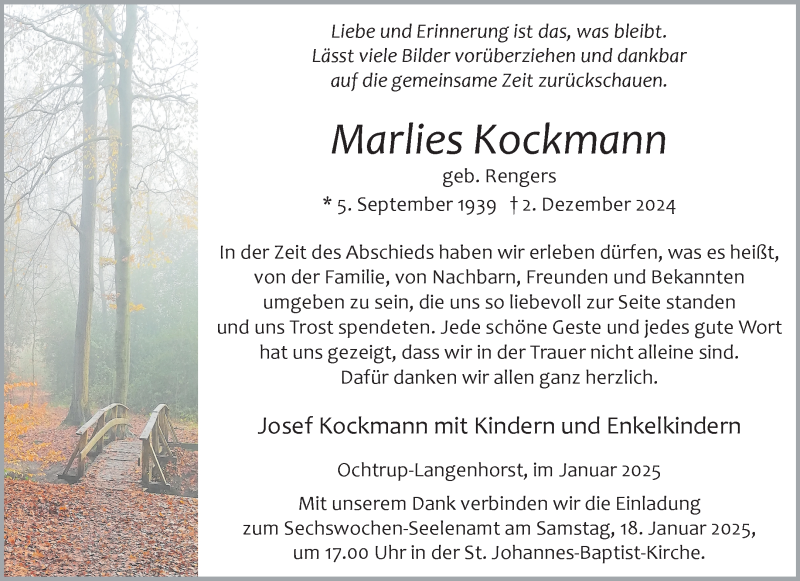 Hier finden Sie alle Traueranzeigen aus der Zeitung, die bisher für Marlies Kockmann erschienen sind. Weitere Traueranzeigen, die in der Zeitung erscheinen, werden hier ebenfalls aufgelistet