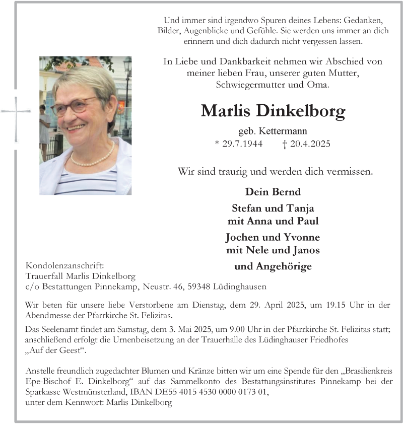 Hier finden Sie alle Traueranzeigen aus der Zeitung, die bisher für Marlis Dinkelborg erschienen sind. Weitere Traueranzeigen, die in der Zeitung erscheinen, werden hier ebenfalls aufgelistet