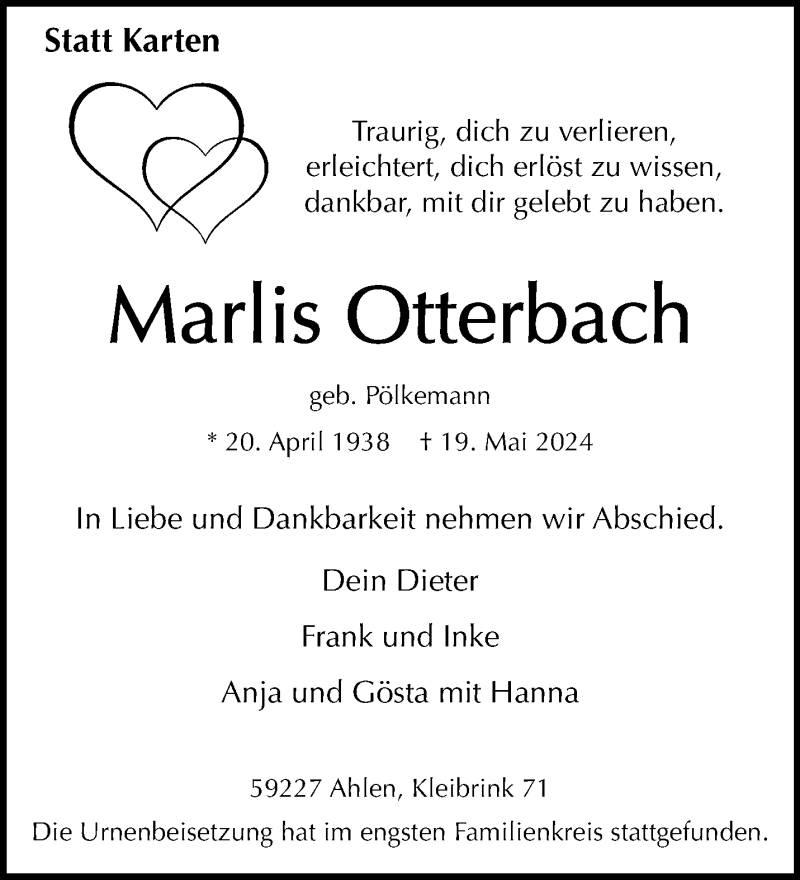 Hier finden Sie alle Traueranzeigen aus der Zeitung, die bisher für Marlis Otterbach erschienen sind. Weitere Traueranzeigen, die in der Zeitung erscheinen, werden hier ebenfalls aufgelistet