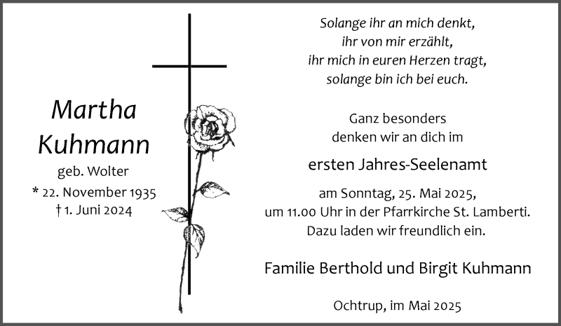 Hier finden Sie alle Traueranzeigen aus der Zeitung, die bisher für Martha Kuhmann erschienen sind. Weitere Traueranzeigen, die in der Zeitung erscheinen, werden hier ebenfalls aufgelistet