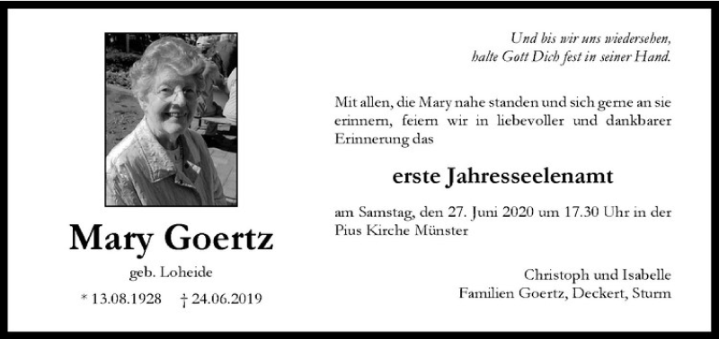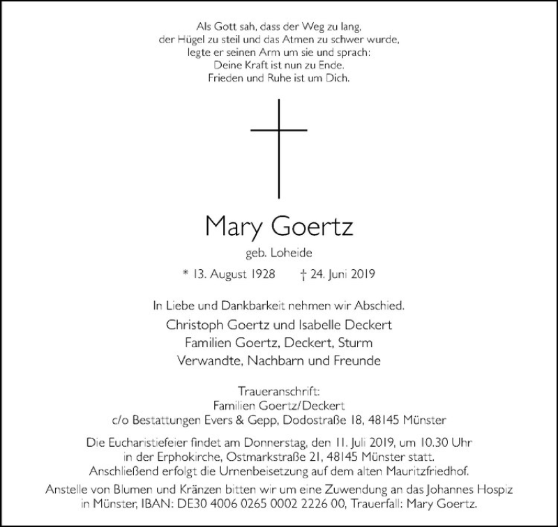 Hier finden Sie alle Traueranzeigen aus der Zeitung, die bisher für Mary Goertz erschienen sind. Weitere Traueranzeigen, die in der Zeitung erscheinen, werden hier ebenfalls aufgelistet