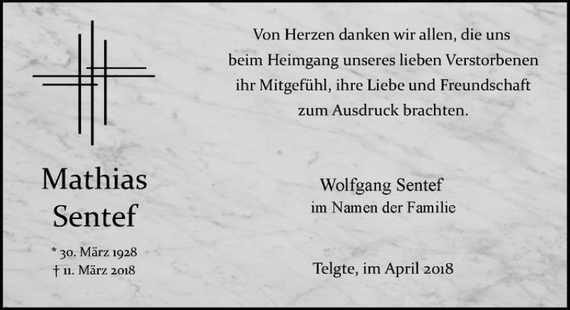 Hier finden Sie alle Traueranzeigen aus der Zeitung, die bisher für Mathias Sentef erschienen sind. Weitere Traueranzeigen, die in der Zeitung erscheinen, werden hier ebenfalls aufgelistet