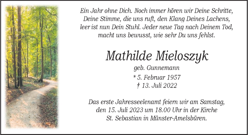 Hier finden Sie alle Traueranzeigen aus der Zeitung, die bisher für Mathilde Mieloszyk erschienen sind. Weitere Traueranzeigen, die in der Zeitung erscheinen, werden hier ebenfalls aufgelistet