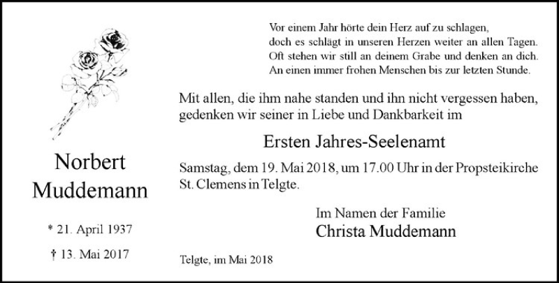 Hier finden Sie alle Traueranzeigen aus der Zeitung, die bisher für Norbert Muddemann erschienen sind. Weitere Traueranzeigen, die in der Zeitung erscheinen, werden hier ebenfalls aufgelistet