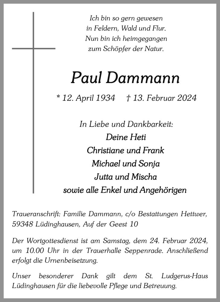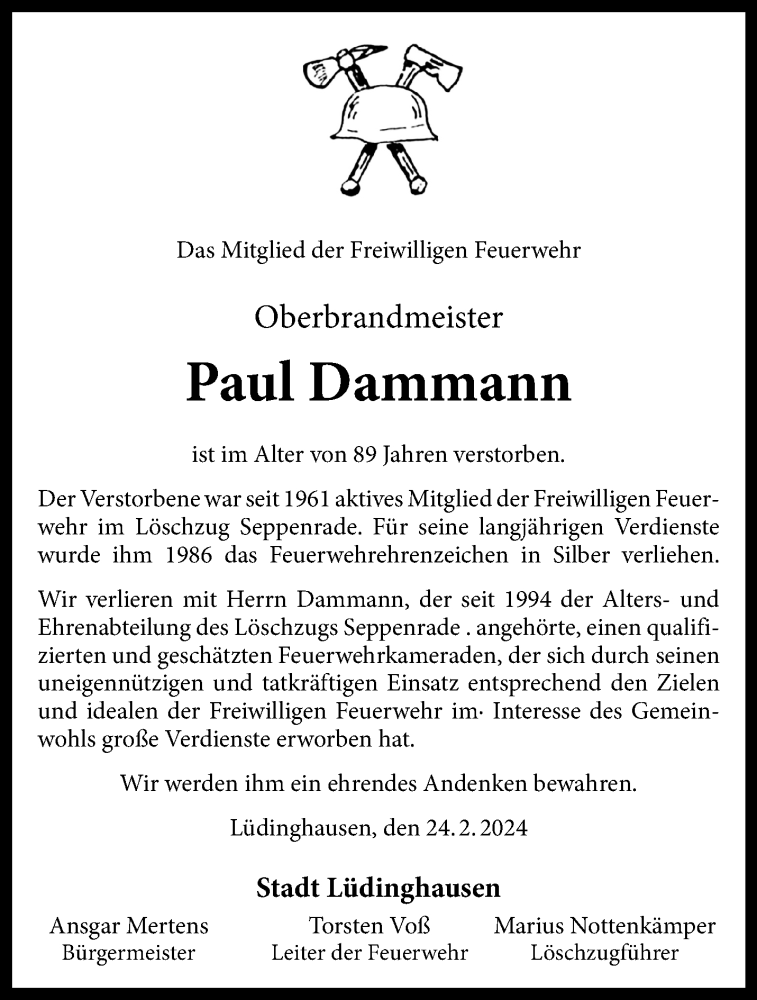 Hier finden Sie alle Traueranzeigen aus der Zeitung, die bisher für Paul Dammann erschienen sind. Weitere Traueranzeigen, die in der Zeitung erscheinen, werden hier ebenfalls aufgelistet