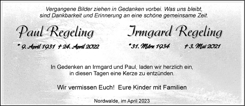 Hier finden Sie alle Traueranzeigen aus der Zeitung, die bisher für Paul Regeling erschienen sind. Weitere Traueranzeigen, die in der Zeitung erscheinen, werden hier ebenfalls aufgelistet